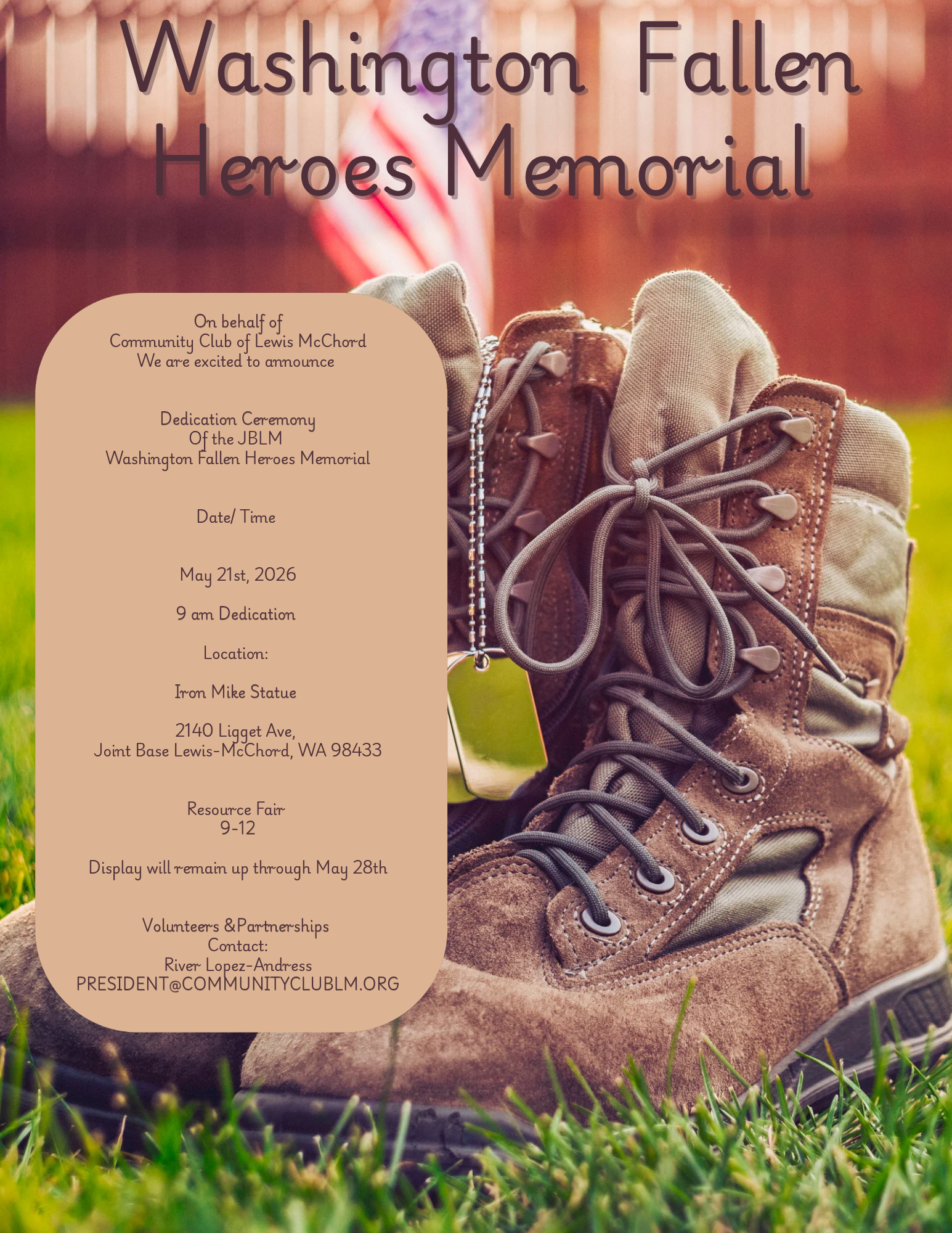 The Community Club of Lewis-McChord extends its sincere appreciation to the Fallen Heroes Project for their partnership and for making this meaningful collaboration possible, bringing the memorial display to communities here in western Washington.